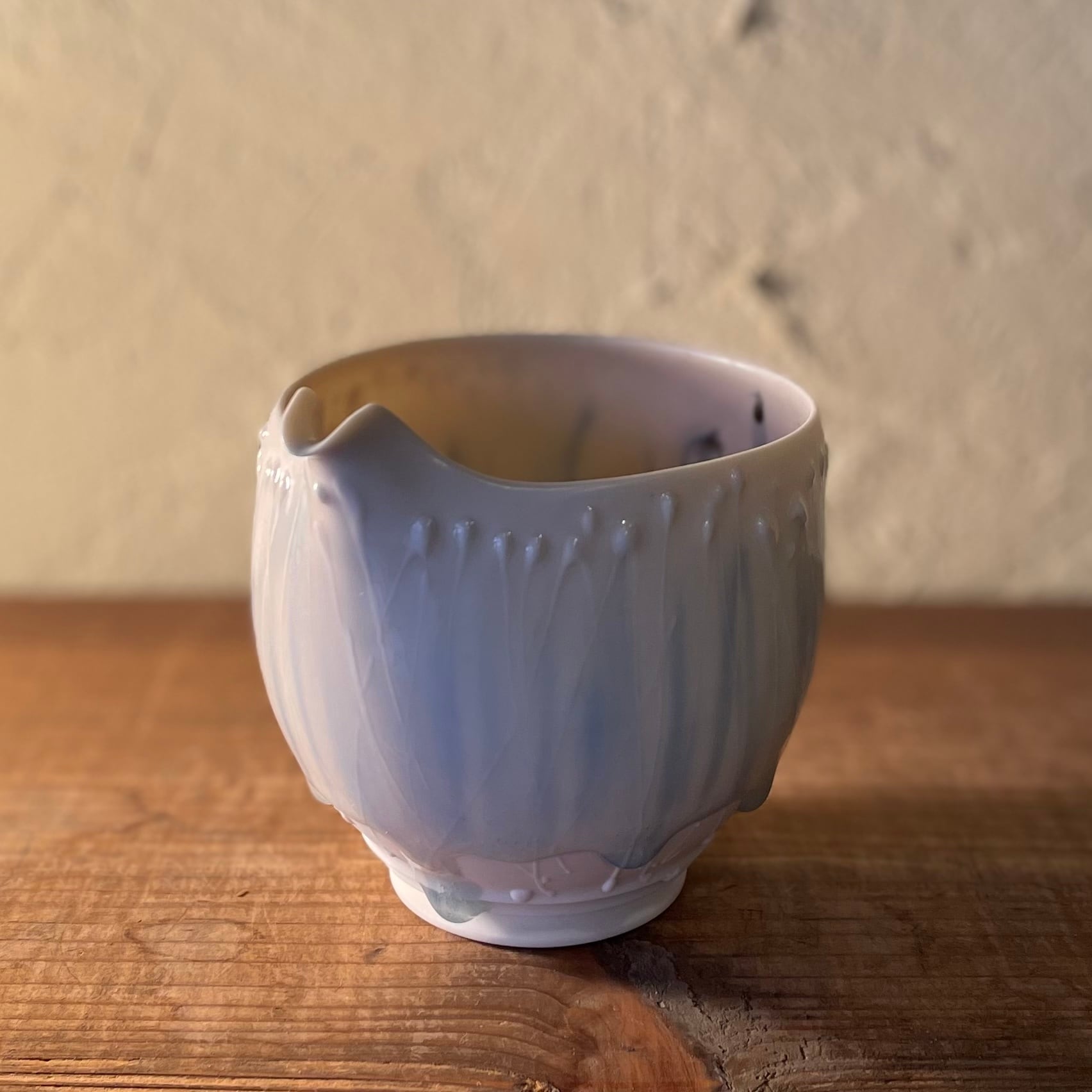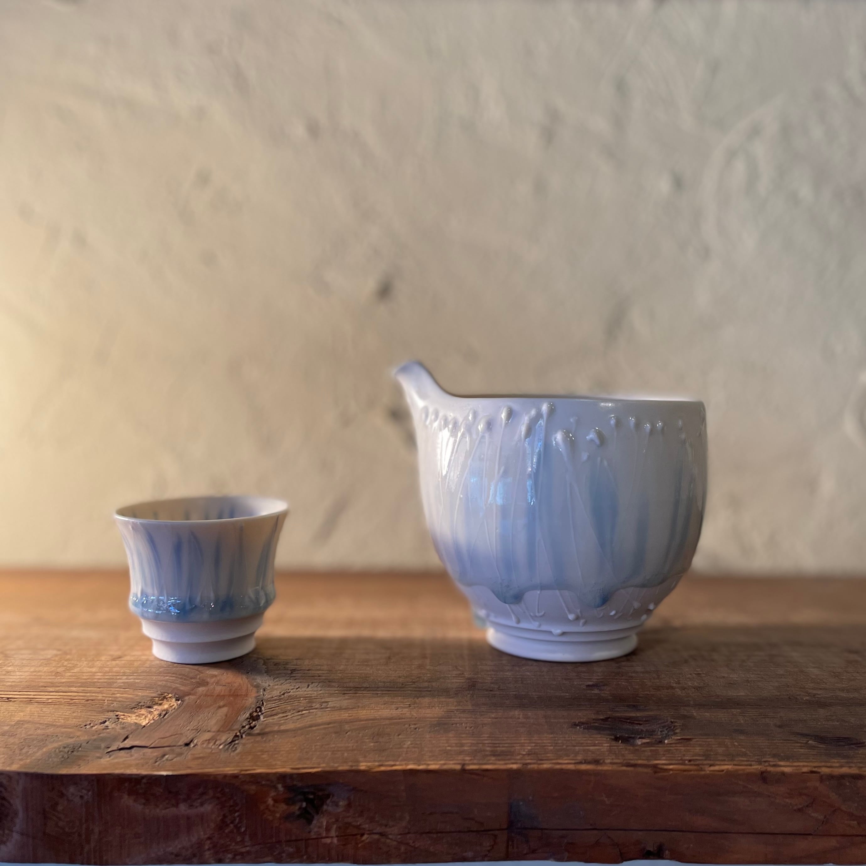 呉須で描いた絵柄が釉薬の下で滲むのが特徴です。