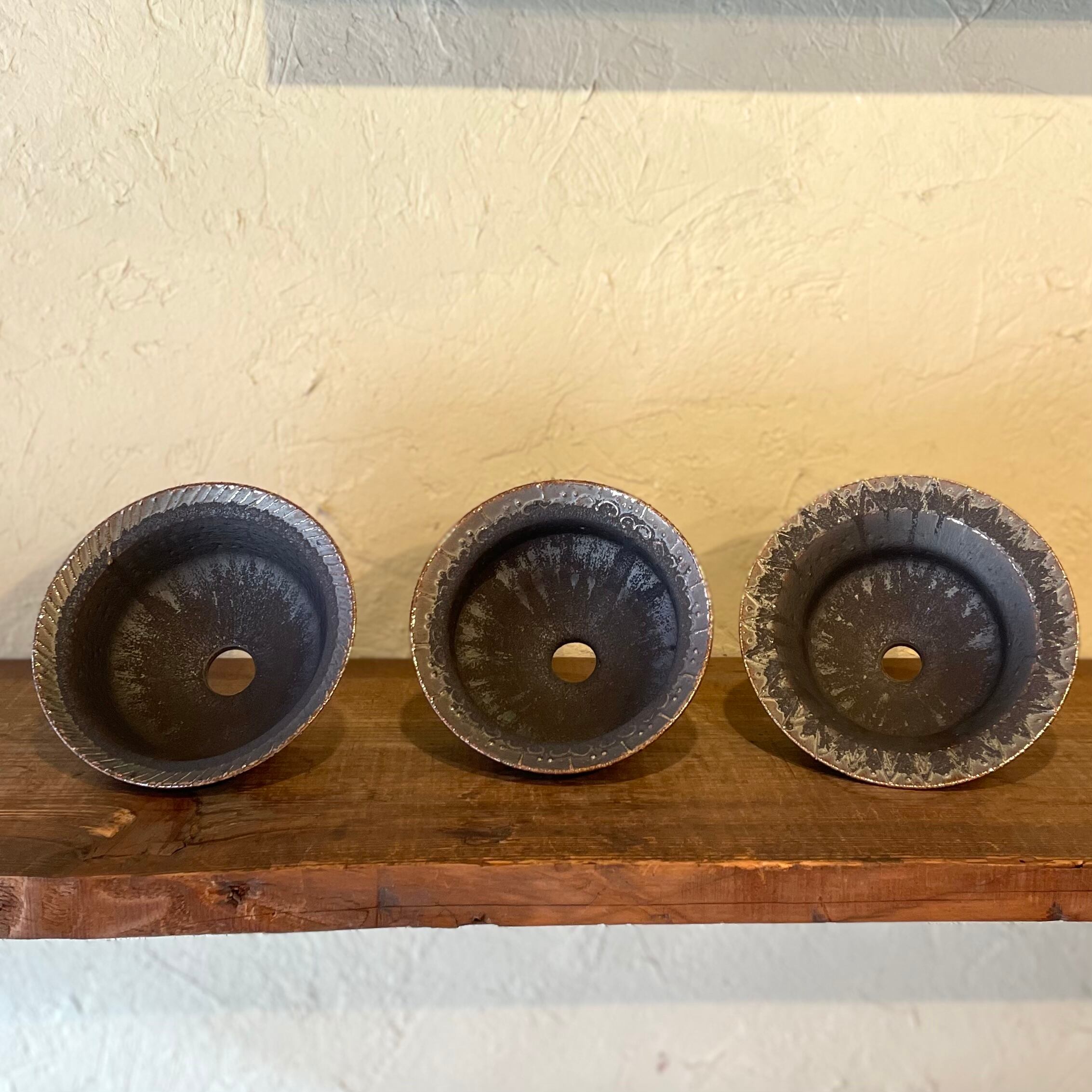手仕事品の為、ひとつひとつのサイズや風合いが微妙に異なります。色合い、形、大きさ、重さ、鉄点やピンホールの入り方などがそれぞれです。